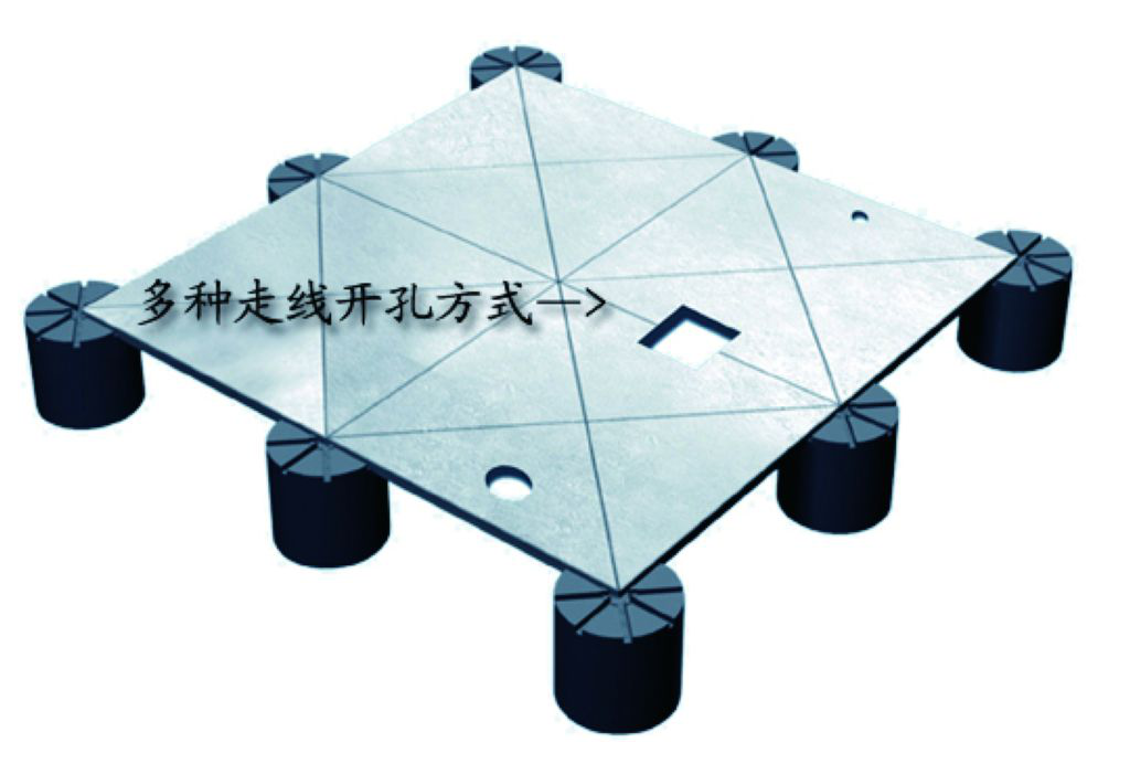 3、采用模塊化圓臺(tái)支架(上表面直徑為90mm),蓋板拉筋自動(dòng)牢固嵌入永不松動(dòng),走動(dòng)無(wú)聲響,腳感舒適。