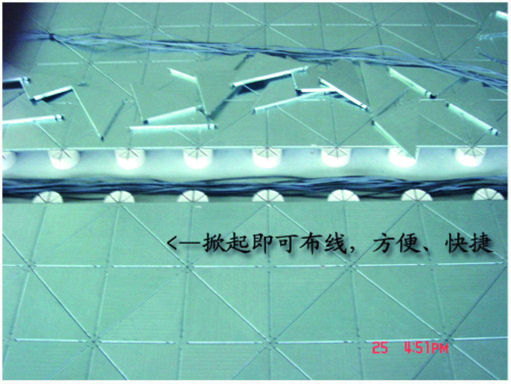 4.地板鋪裝完畢后,自動(dòng)形成走線槽,可任意布線,滿足最復(fù)雜的布線需求。